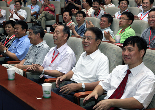 王跃飞书记、陆启铿、丁夏畦、石钟慈、林群、陈翰馥、马志明、崔俊芝、李邦河、席南华等院士,北京师范大学陈木法院士、山东大学彭实戈院士、叶向东副校长以及部分院所领导出席了会议晚宴。他们与参会代表欢聚一堂,共同庆贺严加安先生七秩华诞。