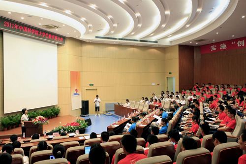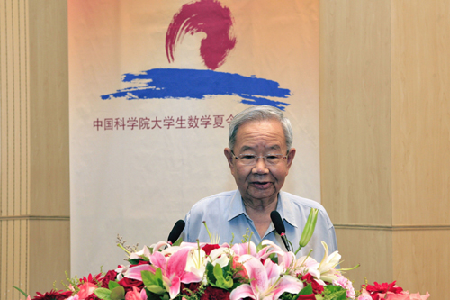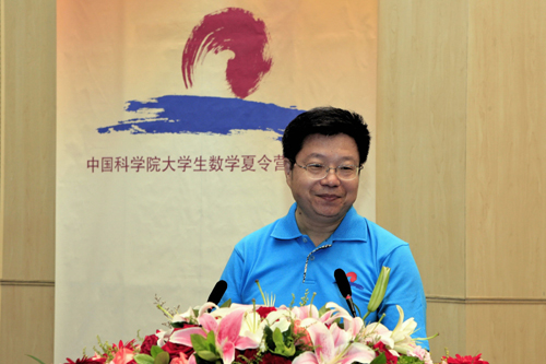 7月26日上午,2011年中国科学院大学生数学夏令营开营式在数学与系统科学研究院思源楼一层报告厅举行。数学与系统科学研究院院长、研究生院数学科学学院院长郭雷院士、党委书记王跃飞、万哲先院士、石钟慈院士、研究生院副院长王颖、数学院副院长陈敏、副院长洪佳林、院长助理闫桂英等院所领导和导师代表以及来自全国43所高校的118位营员出席了开营式。开营仪式由副院长汪寿阳主持。