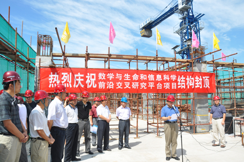 郭雷院长致辞。他首先代表中科院数学与系统科学研究院向施工、监理、设计、造价咨询、招标代理等单位相关工作人员的辛勤付出表示衷心感谢,向不顾酷暑严寒,日夜奋战在工地一线的全体建设者致以最诚挚的问候和崇高的敬意。他说,新科研综合大楼自去年5月24日奠基以来,在各方的共同努力下,主体工程结构顺利封顶,大楼将全面进入装修装饰阶段。他希望,全体参建人员在下一步的工作中,继续通力配合,精心组织,科学施工,严格管理,确保优质、高效、安全、按时完成建设任务,将新科研综合楼建设成精品工程,顺利实现工程的质量创优目标。