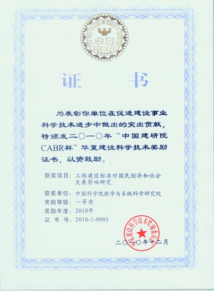 近日,由永利汪寿阳研究员领导的课题组与住房和城乡建设部标准定额研究所、中国社会科学院等共同承担的住房和城乡建设部重大项目“工程建设标准对国民经济和社会发展影响”获得“华夏建设科学技术奖”一等奖。