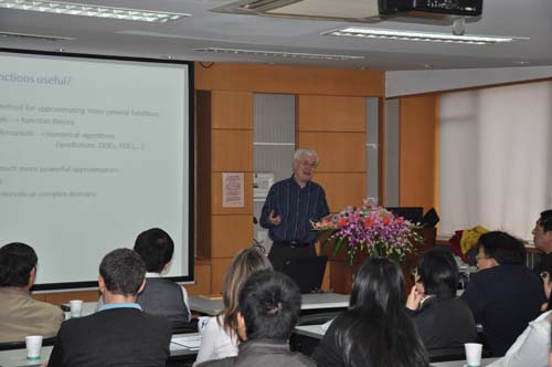 Trefethen教授此行是应计算数学与科学工程计算研究所邀请来数学院开展为期一周的学术交流,并于11月1日和11月3日分别作“Chebfun: a New Kind of Numerical Computing Time”冯康讲座报告和“Robust Rational Interpolation and Pade Approximation”学术报告。在报告中,Trefethen教授用诙谐幽默的语言介绍了他领导的研究组开发的基于Matlab开源软件包Chebfun。报告会由袁亚湘研究员主持。