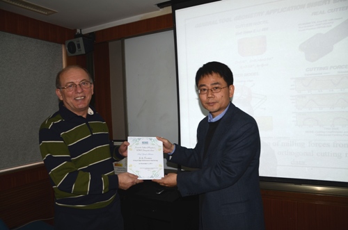 Yusuf Altintas教授主要讲授了他的研究组在铣削加工动力学、机床刀具控制、精密拐角加工和数控系统设计等方面的工作。他首先介绍了用于预测刀具切削力、空间误差和铣削加工震颤的综合模型,以及如何将所建立的模型集成到新型虚拟加工系统,实现模拟零部件的虚拟加工过程。该软件能够预测切削力、转矩、功率、刀具和切屑温度、曲面加工误差、刀具与工件震颤以及无噪音切削条件。此外,他还介绍了高速进给率驱动控制的离散算法、轨迹生成算法以及自适应切削过程控制。Yusuf Altintas教授讲到,先进的数学方法在高性能加工中起着重要作用。在交叉研究中,工程师在问题建模方面应发挥主导作用,而数学家在模型的求解方面应发挥其优势。