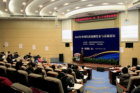 中国经济预测发布与高端论坛由中科院预测科学研究中心主任汪寿阳研究员主持。大会分别就GDP增速预测、投资、消费、物价、进出口、房地产、工业、大宗商品国际市场和能源需求与市场等发布了预测报告。汪同三、祝宝良、任若恩、程兵等著名经济学家分别对预测结果进行了评述,并就2012年中国经济走势发表了自己的观点与看法。