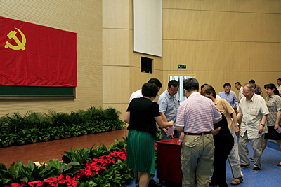 京区党委副书记肖建春发表了简短而热情的讲话。他对党员代表大会的顺利召开和新一届党委、纪委的成功当选表示祝贺,对上届党委、纪委的工作表示感谢,并对新一届党委、纪委提出了希望:希望新一届党委、纪委发扬优良传统,与行政班子团结协作,领导数学院在创新2020中取得更大进展;希望新一届数学院两委贯彻落实中科院“三三”发展战略;落实和推进“一三五”规划;抓好党组织建设:继续围绕创新、服务创新、促进创新,坚持党管干部、党管人才,抓好创先争优活动,推进党的制度建设和创新文化建设。