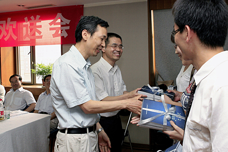 经过数年勤奋学习,又一批毕业生即将离开数学院,踏上崭新的旅程。6月20日下午3点,数学院师生共聚思源楼,送别2012届毕业生。数学院学术院长席南华院士、执行院长王跃飞研究员、学位评定委员会主任马志明院士、副院长汪寿阳研究员、巩馥洲研究员、院长助理闫桂英研究员、潘建中研究员等院所领导与毕业生们在思源楼前合影留念,之后部分院所领导出席了毕业生欢送会。