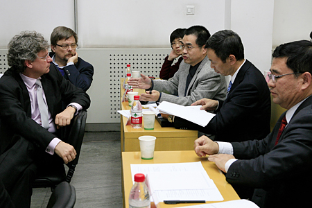 在利用多种形式了解了数学院发展状况之后,专家组通过讨论,形成了专家诊断评议意见,并向中科院领导、数学院领导反馈了评估初步意见。数学院法人王跃飞执行院长代表数学院向专家组专家表示衷心的感谢。