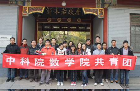 为庆祝中国共产党第十八次全国代表大会胜利召开,2012年11月15日下午,中科院数学院团委组织约30名研究生参观了北京市爱国主义教育基地中国科学院首任院长郭沫若故居。参观结束后,在团委书记韦晓鹏老师的带领下,同学们在郭老的铜像前驻足凝视,向郭老铜像献花,并积极主动地在留言簿上写下了自己最真实的感想。