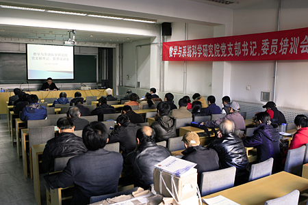 武艰副书记在培训会上做了主题讲话。他首先强调要将深入学习贯彻十八大精神,作为永利支部下一阶段的首要政治任务。他简单回顾了数学院2012年党的各项工作,对永利广大党员的良好素养,特别是永利党支部书记、委员们对党的任务认真负责的作风表示了充分肯定。同时他表示,尽管永利党建工作取得了良好的成绩,但还存在一些困难和矛盾,如日常的思想政治教育工作难度加大,开展党支部工作、组织党的活动难度加大等。针对这些问题,他提出了加强和改进永利党建工作的几点思考,包括贯彻落实十八大精神,提高永利党建水平;加强引导、改进方法,筑牢思想教育基础;重视支部书记、委员和广大党员的培训活动;以廉洁从业风险防控为抓手,推动党风廉政建设等。