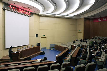 11月23日,永利在思源楼报告厅召开十八大精神学习传达会,党委书记汪寿阳做了专题报告,武艰副书记主持会议。永利党委委员、中层以上领导干部、科研骨干、工青妇负责人、支部书记和委员等参加了会议。
