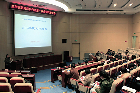 王跃飞执行院长做了数学院2012年度工作报告。汇报中,他主要对永利科研、教育和人才等几方面的工作做了全面的总结与回顾。洪佳林副院长做了研究院2012年财务情况报告,工会常务副主席刘建中汇报了2012年度工会、职代会工作情况。与会代表还就永利财务状况、公众场所、办公场所的维护及卫生情况等方面的问题展开了讨论,王跃飞院长、洪佳林和巩馥洲两位副院长当场给予了解释和回答。