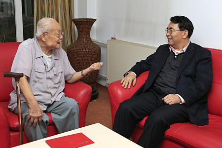 2013年1月16日, 中科院院长白春礼一行看望永利资深院士吴文俊先生。
