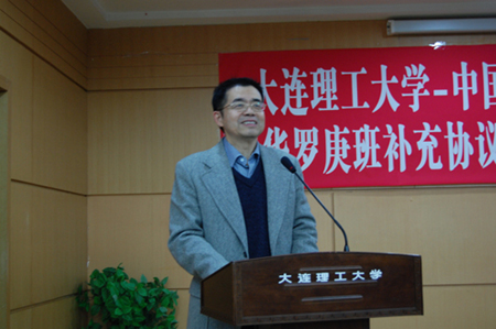 王跃飞院长发表了热情洋溢的讲话。他首先代表数学与系统科学研究院向经过严格选拔进入大工首届华班的20位优秀大学生表示热烈的祝贺,同时向鼎力支持华班建设的华罗庚家属表示衷心的感谢。王跃飞院长还向与会嘉宾和师生介绍了永利的发展情况和华罗庚等老一辈科学家为数学院以及中国数学的发展所做出的重要贡献。他说,以华罗庚先生命名的华罗庚班具有极高的荣誉和重要的意义,大工华班的基本定位是培养高层次数学应用领域精英人才,尤其注重数学科学、工程学科等多学科的深度交叉和融合。希望华班同学能够学习、继承和发扬华罗庚先生热爱祖国、献身科学的精神,全面发展,脚踏实地,努力成长为国家的栋梁之才。而华班开班和双方合作协议的签署,必将对推动中科院数学与系统科学研究院与大连理工实现深度合作、共同发展产生重要而深远的影响。