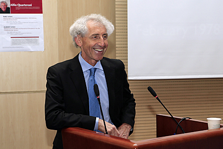 2013年5月7日,瑞士联邦理工学院计算科学和工程数学研究所所长,意大利米兰理工大学高级建模科学中心主任 Alfio Quarteroni 教授作为第五位冯康公众演讲者在思源楼报告厅作了题为“Mathematics for Industrial Innovation, Life Sciences, and the Environment”的冯康公众演讲。公众演讲由中国科学院科学与工程计算国家重点实验室学术委员会主任崔俊芝院士主持。包括石钟慈院士、洪佳林副院长在内的80多名院内外师生参加了这次报告会。