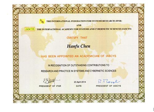 近日,我院陈翰馥院士因在系统和控制论科学的研究和实践中的杰出贡献被国际系统研究联合会(简称IFSR)和国际系统与控制科学院(简称IASCYS)授予国际系统与控制科学院院士称号。这是系统工程领域中的最高学术荣誉称号。