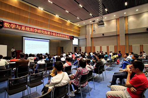 在新大楼一层大报告厅,由王有德、周勇研究员、冯秀涛副研究员等8位科研人员分作了精彩的科普报告,如《工业革命与数学》《大数据时代统计学科的发展》《如何破解密码》,深深吸引住了听众。在新大楼二层的教室中,播放着精彩的3D数学电影,室内座无虚席,室外还有很多等待观看的家长和儿童。