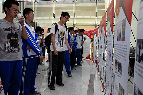 今年新开馆的数学馆,吸引了很多的参观者,多名志愿者在给观众讲解着数学以及数学院的历史。500多平方米的数学馆里,紧凑地摆放着数学院的历史展板,半个多世纪的成就和故事在这里沉淀。华罗庚、张宗燧、关肇直、冯康、陈景润……春华秋实,60多年来,数学院里,仅数学大师的照片就摆满了长长的一面墙。