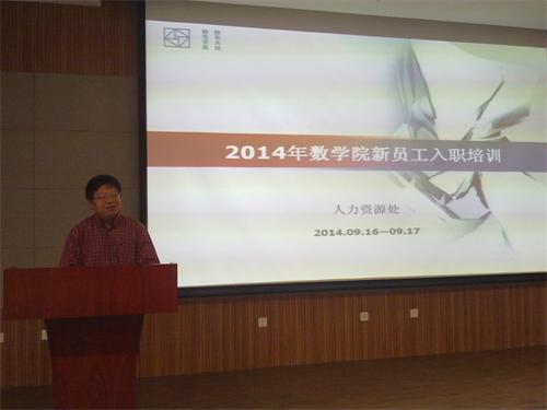 他对新员工提出四点希望。一、攻坚克难、志向远大。青年科研人员要不畏风险,不惧困难,勇于攀登科学高峰;要敢于向重大问题挑战,做到国际领域顶尖水平;二、爱岗敬业、脚踏实地。培养兴趣、深化情趣、不断增强敬业精神;向老一代科学家学习,吃苦耐劳,潜心科研;三、严谨治学、务实求真。秉承学术传统、弘扬科学精神;坚持真理,尊重科学;四、积极主动、标新立异。科研人员要勇于追求、勇于探索;要长于立异,不迷信权威,努力做一些与众不同的课题,走别人没走过的路;管理人员也要创新管理工作,提升管理水平。总之,期望大家能够继承数学院人的光荣传统,通过坚持不懈的艰苦努力,与数学院共同成长,共铸辉煌!