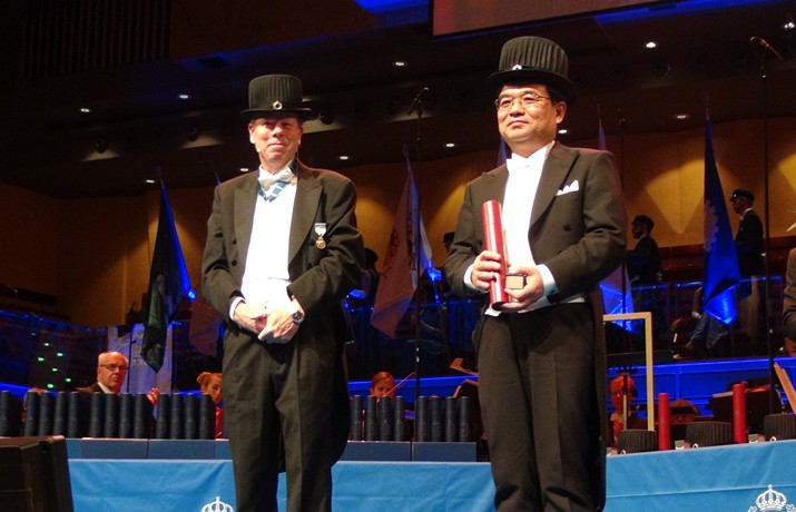 瑞典皇家理工学院建成于1827年,是瑞典历史最悠久、规模最大的理工类高等学府,这里曾诞生过诺贝尔奖和阿贝尔奖等世界科学大奖得主。自1944年该校首次将荣誉博士学位颁发给后来的瑞典国王古斯塔夫六世·阿道夫(Gustav VI Adolf)等人起,在过去七十年间共为二百余位科学技术等领域的杰出人士颁发此荣誉,以表彰他们为科学进步做出的重大贡献。历史上,我国只有著名物理冶金和晶体学家郭可信院士于1980年获得KTH授予的该项荣誉。今年获此殊荣的其他四位杰出人士分别来自瑞典、美国和英国三个国家。颁奖仪式结束后,在斯德哥尔摩市政厅(蓝厅)随即举行了上千人的晚宴,大厅内悬挂着包括五星红旗在内的获奖者所在四国的国旗。晚宴后接着在市政厅(金厅)举办了庆祝舞会。颁奖仪式之前,郭雷还应邀在KTH作了题为“大群体系统的同步与干预”的学术报告。