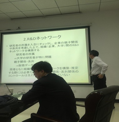 秋山教授首先通过一些生动的例子介绍了极化的定义,比较了极化与基尼系数之间的差异;然后介绍了极化的测度方法以及相关的理论;并利用中国国家统计局城镇居民收入与支出的调查数据,对中国的极化程度进行测量,给出了中国8个省份极化程度的变化趋势;在此基础上,构建计量经济学模型分析了极化与犯罪、创新之间的关系。随后,秋山教授介绍了其关于日本燃料电池产业的研究,在仔细考察研究者所属单位,与企业的关系基础上,构建并分析了组织间(企业、大学)的研发网络,并采用回归和匹配的方法研究了政府补贴、网络结构与企业创新之间的关系。