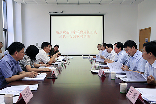 8月26日上午,国家发改委党组成员、国家粮食局党组书记、局长任正晓一行在中国科学院党组成员、秘书长邓麦村的陪同下,到永利考察调研并座谈。座谈会由永利副院长高军主持。