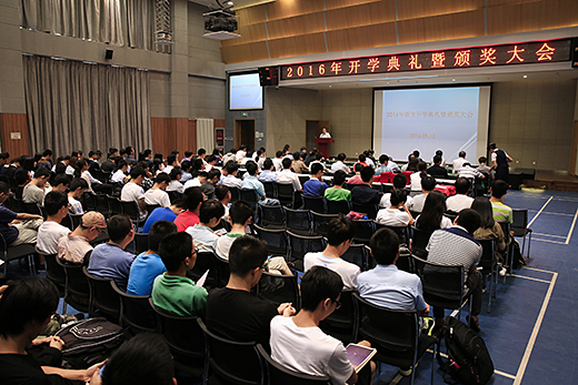 9月13日下午,中科院数学与系统科学研究院/中科院大学数学科学学院2016年新生开学典礼暨颁奖大会在南楼召开。数学院学术委员会主任马志明院士、院长王跃飞研究员、国科大副校长高随祥教授、数学院副院长巩馥洲研究员、武艰副书记、数学科学学院副院长郭田德教授等院所领导,以及2016级研究生新生、“华罗庚数学英才班”部分同学等出席了本次开学典礼暨颁奖大会。大会由院长助理戴彧虹研究员主持。