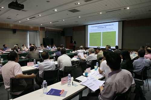评估验收会分三个阶段进行。首先,国际专家组对数学卓越中心的研究方向、研究队伍与研究成果进行了评估。数学院院长、数学卓越中心主任席南华院士汇报了数学卓越中心总体情况,“数学重大难题”、“应用数学重大共性问题”、“数学与系统科学交叉前沿”三个研究团队学术带头人周向宇、袁亚湘、郭雷汇报了团队整体情况,付保华、黄飞敏、李向东、周爱辉、高小山和汪寿阳六位研究骨干分别汇报了研究进展。报告会后,国际专家组还参观了数学院,与数学卓越中心领导、研究员、青年科学家进行座谈,进一步了解相关情况,最后形成了初步评议意见。