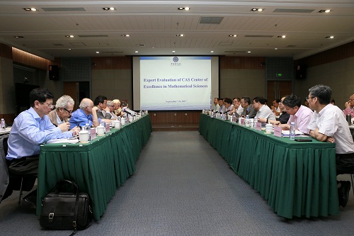 2017年9月7-8日,中国科学院数学科学卓越创新中心(以下简称“数学卓越中心”)国际评估验收会议在数学院召开。中国科学院副院长丁仲礼院士参加了会议。国际专家组由数学科学领域的九位国际著名科学家组成,包括:Armen Glebovich Sergeev、Gui-Qiang G. Chen、Constantine M. Dafermos、Yongmiao Hong、Deepak Kapur、Nelson Maculan、Michael Röckner、Suresh P. Sethi、James M. Tien。管理专家组成员包括中科院发展规划局局长谢鹏云、前沿科学与教育局副局长黄敏、重大科技任务局副局长徐帆江、科技促进发展局陈文开副局长、人事局四级职员李洪伟和条件保障与财务局处长罗雯。中科院院机关的相关领导,数学院和数学卓越中心相关领导及科研人员60余人参加了此次会议。