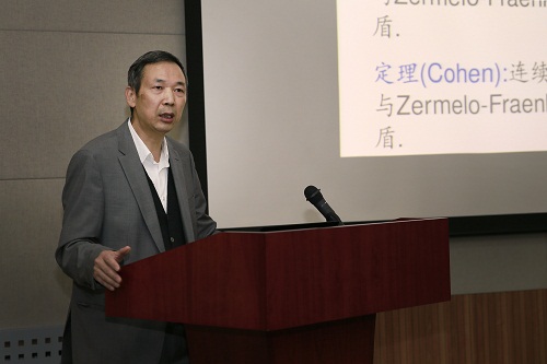 首先,席南华院士代表数学院向参加论坛的各位嘉宾表示热烈欢迎,并简单介绍了中科院青年促进会的相关情况,最后希望论坛越办越好,让更多的年轻科学家成长起来。接着,他作了题为《理解数学》的报告,他指出,理解数学包括“怎样掌握数学的思维方式”“什么东西对于数学是基本的”“什么样的问题是好问题”三个方面。他说,基本的对象、典型的定理、优美的计算和证明对于数学来说都是基础的,而那些指向更深更远的问题就是好问题。他认为,当今数学还是几何、代数、分析数学三足鼎立的时代。讲座过程中,他还指出培养哲学思维有利于大家更好地理解数学,希望在场学子们认真学习哲学。