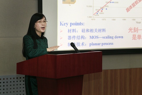 刘明院士作了题为《集成电路发展的现状、挑战与机遇》的报告,分别从集成电路发展现状、图形微缩挑战/应对策略、功耗/性能挑战/应对策略以及未来发展方向和机遇方面进行介绍,最后她对微电子科学与技术的特点进行了概括,并指出集成电路未来发展以应用为导向,呈多元化趋势。
