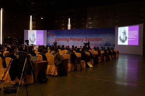 本次大会主要内容涵盖系统控制、通讯、电力电子、仪器仪表和计算智能等领域的工业与制造理论和应用。本次大会共收到投稿2068篇(录用1428篇,录用率69%),其中国外投稿超过800余篇,投稿数量创造了大会的历史记录, 注册代表人数达到创纪录的1508人。此外,大会晚宴上还颁发了2017年度IEEE工业电子学会的各大奖项。