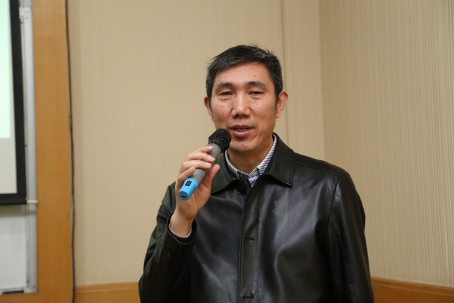 随后是项目依托单位数学院潘建中院长业务助理致辞。潘建中研究员在致辞中介绍了数学院的研究方向以及与基金委的渊源,感谢基金委管理科学部的支持。数学院也从各个方面全力支持了项目的研究。潘建中研究员还对参与项目的合作单位的专家以及评审专家表示感谢,希望今后能够和基金委及各个兄弟单位有更深入的合作研究。