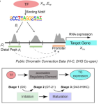 (上):基于干细胞分化过程的转录因子-可及调控元件-靶基因三元组的网络推断模型;