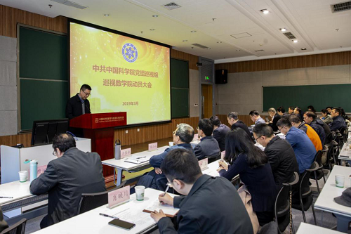 根据中国科学院巡视工作领导小组统一部署,受中科院党组委派,3月6日下午,院党组巡视组巡视数学院动员大会召开。会上,中央纪委国家监委驻院纪检监察组副组长、院巡视工作领导小组成员孙中和作动员讲话,并宣读了巡视组组长授权通知书和巡视组组建通知,巡视组组长牟振江作巡视工作有关情况报告。数学院院长席南华代表领导班子作整体情况报告,党委书记武艰作全面从严治党专题报告。动员会由北京分院纪检组组长、分党组成员,京区事业单位党委副书记、纪委书记倪宏主持。巡视组全体成员,巡视办工作人员,北京分院相关工作人员,数学院院所领导、党委委员、纪委委员,管理支持部门负责人、各所办主任、各中心办公室主任、各支部书记,职代会、工会、妇委会、团委、学生会等主要组织的负责人,副高级及以上专业技术岗位人员等190余人参加会议。