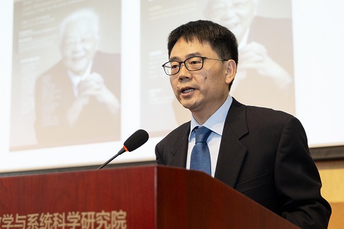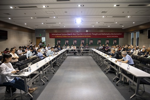 本次纪念大会是由数学院主办,数学机械化重点实验室承办。数学院院长席南华院士,中国数学会理事长袁亚湘院士,中国工业与应用数学学会理事长张平文院士,中国人工智能学会理事长李德毅院士,中国科学技术大学校长包信和院士,中国科学院前沿局王永祥研究员,国家自然科学基金委数理学部赵桂萍,北京大学教授姜伯驹院士,数学院陈翰馥院士、林群院士,广州大学计算科技研究院名誉院长张景中院士,数学院李邦河院士,中国科学院国家数学与交叉科学中心主任郭雷院士,南开大学张伟平院士,首都师范大学副校长方复全院士,欧洲科学院院士、北京航空航天大学王东明教授,数学院党委书记兼副院长武艰,数学院常务副院长高小山研究员等260余人出席了会议。会议由高小山研究员主持。
