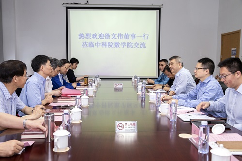 2019年6月4日上午,华为董事,战略研究院院长徐文伟一行来访中科院数学与系统科学研究院(以下简称“数学院”)。数学院院长席南华院士、学术委员会主任马志明院士、常务副院长、国家数学与交叉科学中心副主任高小山研究员、国家数学与交叉科学中心副主任闫桂英研究员、中国科学院大学数学科学学院常务副院长郭田德研究员、华为董事,战略研究院院长徐文伟、战略研究院副院长朱广平、华为公司技术合作部部长艾超、北京研究所所长常胜、北研所合作处处长尹建春以及相关科研人员和技术专家等近30人参加了此次座谈交流会。座谈会由高小山副院长主持。