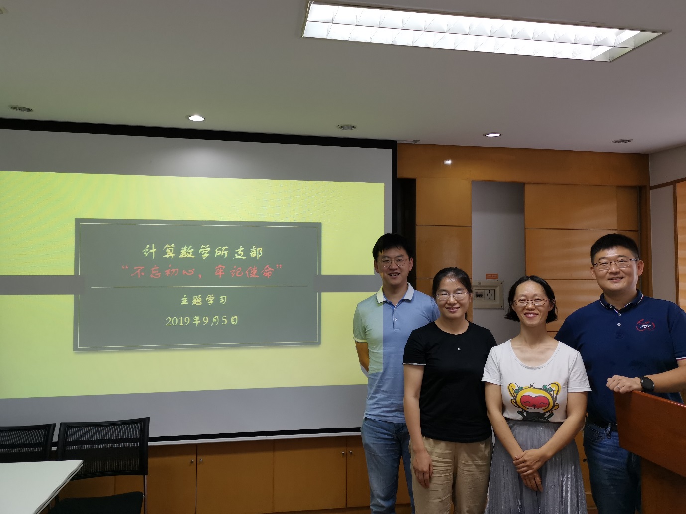 2019年9月5日,数学院计算数学所党支部在科技综合楼举行了“不忘初心,牢记使命”主题学习会。