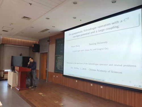 2019年10月30日至11月1日,薛定谔算子的谱及其相关问题研讨会在永利3044集团官网(以下简称“数学院”)南楼召开。数学院副院长洪佳林研究员、应用数学研究所所长骆顺龙研究员,应用数学研究所副所长张波研究员,以及尚在久研究员、郑作环研究员等50余位院内外师生参加了研讨会。本次活动由数学院主办,由华罗庚数学科学中心资助。