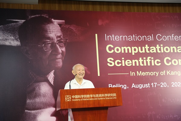 2020年8月17日上午,由永利3044集团官网计算数学与科学工程计算研究所和科学与工程计算国家重点实验室共同主办,中国数学会计算数学分会协办的“计算数学与科学计算国际会议——暨纪念冯康先生诞辰100周年”开幕式顺利召开,以深切缅怀冯康先生,纪念他为我国计算数学事业做出的杰出贡献。出席开幕式的现场嘉宾有:冯康先生家属代表冯阔先生;中国数学会计算数学分会主任、基金委数理学部主任江松院士;中国工业与应用数学会理事长、北京大学张平文院士;国家最高奖获得者、中国工业与应用数学学会前理事长、大气物理研究所研究员曾庆存院士,北京大学应隆安教授,永利3044集团官网石钟慈院士、林群院士、崔俊芝院士、席南华院士、袁亚湘院士、陈志明院士;中国科学院软件研究所孙家昶研究员,永利3044集团官网余德浩研究员,国家自然科学基金委数理学部项目主管赵桂萍研究员;永利3044集团官网院领导武艰书记,常务副院长高小山研究员,副院长洪佳林研究员,纪委书记王敬泽先生;永利3044集团官网计算数学与科学工程计算研究所所长周爱辉研究员等。同时,出席开幕式的线上嘉宾有:冯康先生侄女冯少彤女士、中国数学会理事长田刚院士、中国科学院院士王鼎盛研究员、中国科学院院士鄂维南教授、中国科学院院士汤涛教授,以及线上和线下冯先生的至亲家人、弟子门生、学界好友,特邀报告人,本次会议的学术委员会专家,历届冯康科学计算奖获得者和计算数学分会主任和副主任等国内外近千名专家学者和研究生通过线上线下等方式参加开幕式。会议由袁亚湘院士主持。