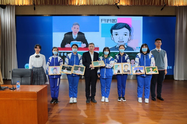 报告结束后中关村中学电脑美术社的同学为表达对席南华院士的感谢,向他送上了“我心目中的席南华院士”等系列画像。