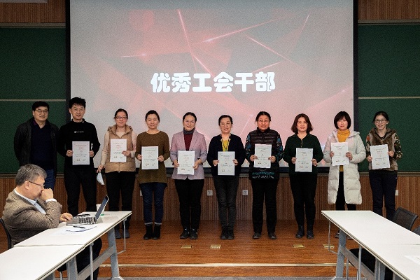 接下来,福利小组代表刘颖与应用所分工会代表丁璐分别回顾了一年的工作情况,介绍了工作经验,现场气氛热烈,笑声不断。现场进入颁奖环节,武艰、王敬泽、张立群为中科院模范职工小家、13位优秀工会积极分子、9位优秀工会干部、优秀分工会颁奖。此外,各位参会职工踊跃为数学院和数学院工会的诸多事项建言献策,各部门处室负责人现场解答。