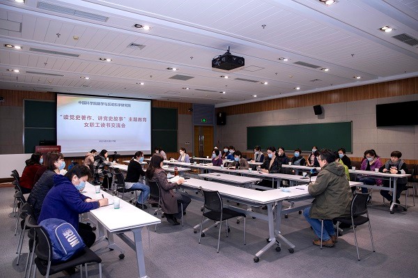 为纪念中国共产党成立100周年,庆祝“三八”国际妇女节,3月17日上午,中科院数学与系统科学研究院(以下简称“数学院”) 党办和妇委会联合举办了“读党史著作、讲党史故事”主题教育女职工读书交流会,以引领广大女职工进一步坚定听党话、跟党走的信念信心,并激励和引领广大女职工矢志投身科技创新事业,在各自岗位上作出新的更大贡献。