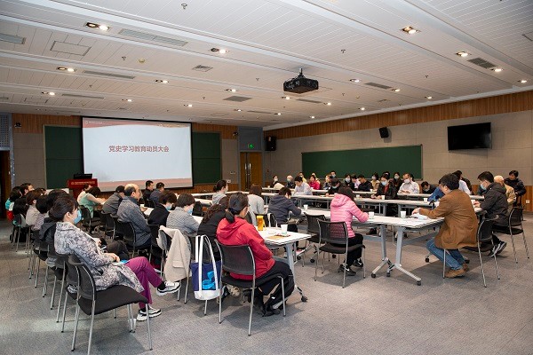 接着,武艰书记在党史学习教育动员讲话中指出,今年是建党100周年,开展党史学习教育是数学院今年的一个重中之重的工作。他向大家传达了中央和科学院关于党史学习教育的背景意义、学习内容和要求、具体方案,并分享了自己的理解体会。他指出要围绕为什么学、学什么和怎么学三个方面来进行,并强调要把党史教育与数学院的科研实际工作贯穿结合起来。最后他希望大家以更高标准更高要求来开展党史学习教育,更要挖掘身边的优秀共产党员,树立典型进行宣传教育。党办主任丁晓蕾就具体活动要求进行了补充。