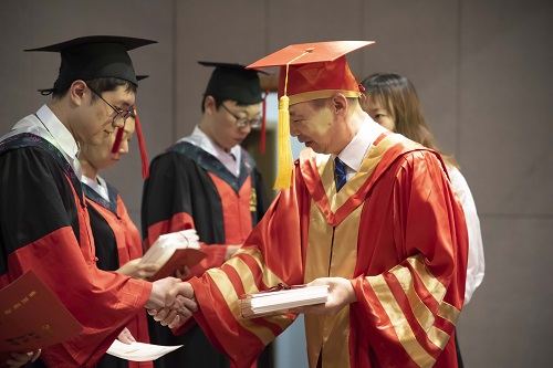 袁亚湘院士祝贺同学们顺利毕业,祝愿大家能笑对人生,未来的道路越走越宽广。他表示不管同学们未来发展如何,数学院永远都是同学们的家,永远是大家的坚强后盾。希望同学们永远心系母校、心系数学院,常回家看看,为数学院的建设和发展贡献力量。