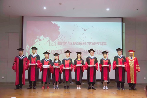 接下来,老师同学们一同观看了研究生会精心制作的毕业纪念视频,共同见证在数学院学习期间的点点滴滴。视频结束后,席南华院士与袁亚湘院士为荣获2021届北京市优秀毕业生和国科大优秀毕业生称号的同学颁发证书与毕业纪念册。