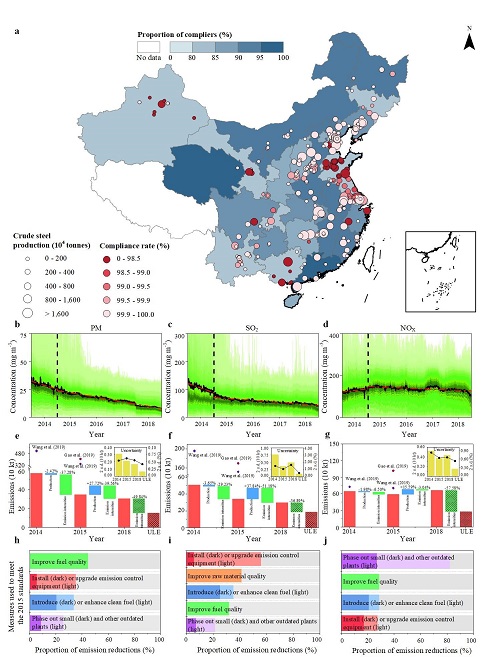 2021年6月25日,中国科学院预测科学研究中心汪寿阳研究员(共同通讯作者)联合北京航空航天大学经济管理学院汤铃教授(通讯作者)、生态环境部环境工程评估中心伯鑫高级工程师(第一作者)、伦敦大学学院米志付教授(共同通讯作者)等中国、英国、美国等多家学术机构,以“Effect of strengthened standards on Chinese ironmaking and steelmaking emissions”为题在Nature Sustainability在线发表了最新研究成果。该研究引入实时在线监测系统(CEMS)数据,构建了中国钢铁厂高精度排放大数据库及其评估模型,发现中国钢铁五年内污染下降近一半,明确指出在“碳达峰-碳中和”背景下,其未来减排任重道远,“减污降碳”协同治理应该成为政府的主要政策方针。