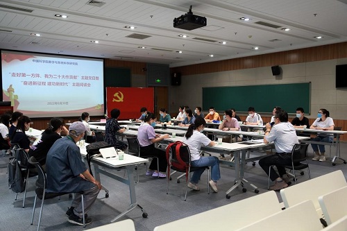 为庆祝中国共产党成立101周年,推动干部职工践行科学家精神、建功立业新时代,以良好精神面貌和优异科研成绩迎接党的二十大胜利召开,中科院数学与系统科学研究院(以下简称“数学院”)于6月30日下午举办“走好第一方阵、我为二十大作贡献”主题党日暨“奋进新征程 建功新时代”主题阅读会。