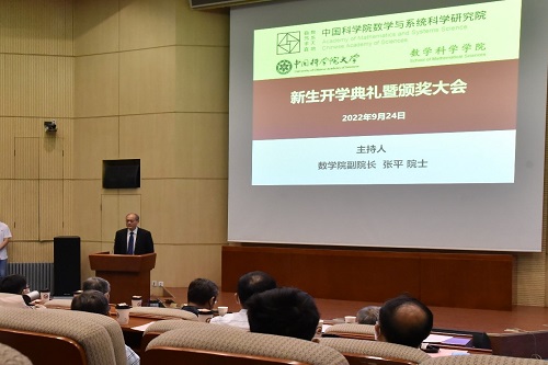 2022年9月24日上午,永利3044集团官网(以下简称“数学院”)、中国科学院大学数学科学学院(以下简称“国科大数学学院”)2022年开学典礼暨颁奖大会在数学院思源楼报告厅举行。数学院院长兼国科大数学学院院长席南华院士、数学院学位评定委员会主任袁亚湘院士、数学院党委书记兼副院长武艰、数学院常务副院长高小山研究员、数学院纪委书记王敬泽、数学所所长徐晓平研究员、副所长付保华研究员,应用数学所所长骆顺龙研究员、计算数学所所长周爱辉研究员、系统所所长助理李洪波研究员、国科大数学学院执行副院长郭田德教授、国科大数学学院党委书记杨文国教授等院所领导出席本次开学典礼暨颁奖大会。此外,参会的还有研究生奖学金获得者以及部分学生代表、华罗庚班2019级的部分同学、斯伦贝谢公司特邀代表齐峰先生等。数学院副院长张平院士主持开学典礼。