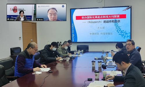 中国科协科技导报社副社长、副主编史永超做了题为“创办国际化高起点科技大刊探索”的主题报告,从《Research》的运作与启示出发,细致分析了科技期刊各方需求,并从期刊定位、稿源问题、质量标准、数据库收录、经费投入和未来发展等方面做了详细阐述。中科院长光所研究员、《Light》执行主编白雨虹做了题为“超越期刊与论文,服务科研与发展”的主题报告,指出学术期刊的发展要与科研紧密融合,做发展科技的推手、科学传播的舞台、成果转化的平台、学人成长的沃土。报告结束后,双方围绕期刊学术质量提升和学术影响扩大、专题出版和栏目策划、优质稿源获取和办刊政策支持等方面内容进行了深入探讨。