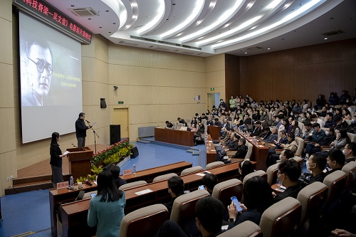 中科院文联主席刘剑在致辞中简要介绍了科技脊梁系列短片,强调了弘扬老一辈科学家精神的必要性和重要性。老一辈科学家忘我、无私奉献、坚毅不拔、滴水石穿的精神,构成了当代科学家宏大的精神洪流。这些精神的传承要通过一代一代科学家接续发展。系列短片用电影的艺术形式去诠释和弘扬他们,让科学家们以鲜活的方式走进大众尤其是年轻人的视野,引领和教育广大青年科技工作者科技报国、创新为民。最后,他谈到中国的未来在于科技强国,希望数学院的各位老师和同学在未来科技发展中,秉承科学精神,把中国科技不断推进至更高更远,做出应有的贡献。