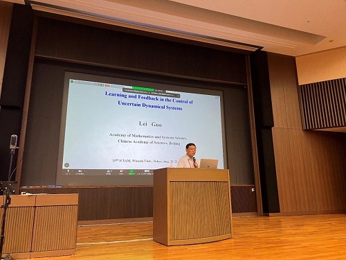 第10届国际工业与应用数学大会(ICIAM 2023)于 2023年8月20日-25日在日本东京举行。国际工业与应用数学大会(ICIAM)是国际工业与应用数学领域水平最高、规模最大、影响最广的学术盛会,每四年召开一次。本届大会盛况空前, 参会注册代表达5500余人。本届大会共有27位著名应用数学家作邀请报告(Invited Lecture),这些学者是由大会专门成立的遴选委员会通过投票选举产生的, 被邀请者都是学界公认的领头科学家。系统控制重点实验室的郭雷院士是本届大会中仅有的两位作邀请报告的华人学者之一。